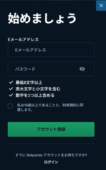 Betpanda登録方法